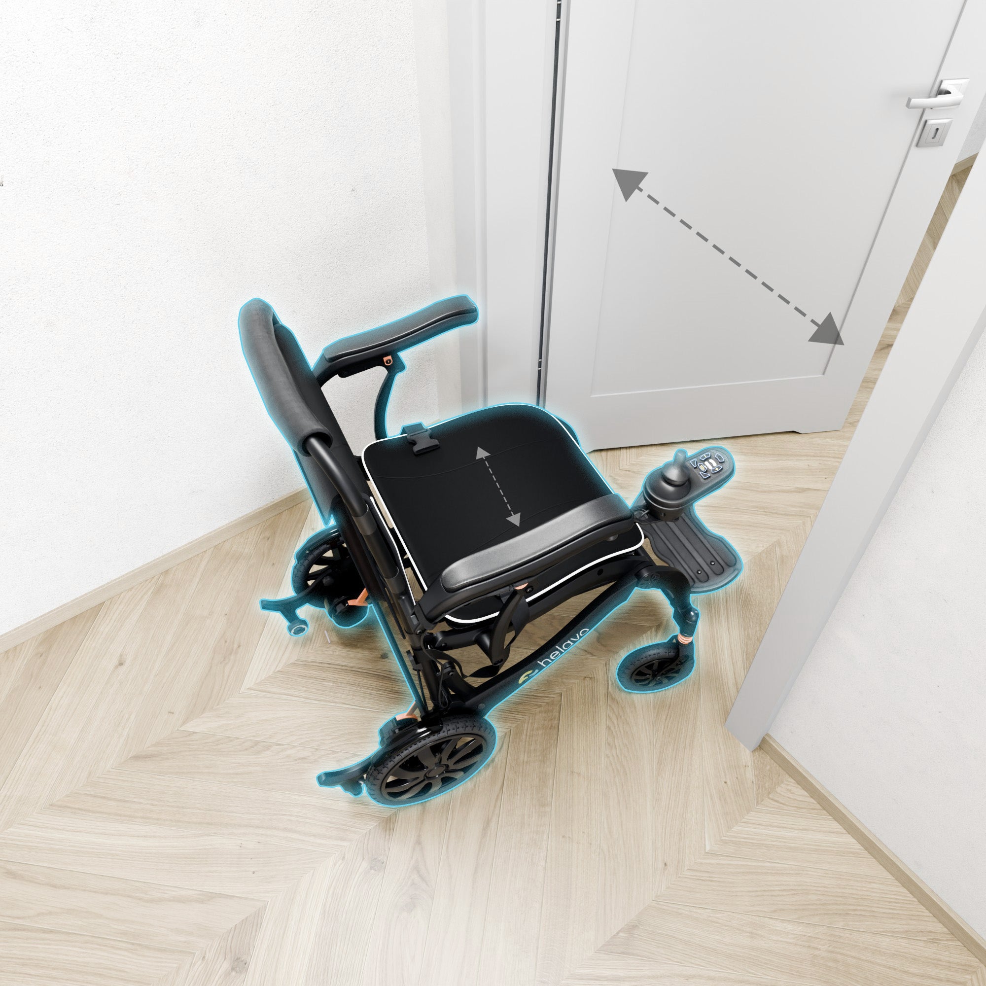 Dieser elektrische Rollstuhl vereint eine schlanke Gesamtbreite von nur 60,5 cm mit einem großzügigen Sitz von 45 cm – die ideale Kombination aus Wendigkeit und Komfort. Das anatomisch geformte Memory-Foam-Sitzkissen bietet hervorragende Unterstützung, während der abnehmbare und waschbare Bezug für Hygiene und einfache Pflege sorgt. Das Ergebnis ist ein kompakter Rollstuhl, der sich geräumig, bequem und mühelos manövrierbar anfühlt – selbst in engen Innenräumen.